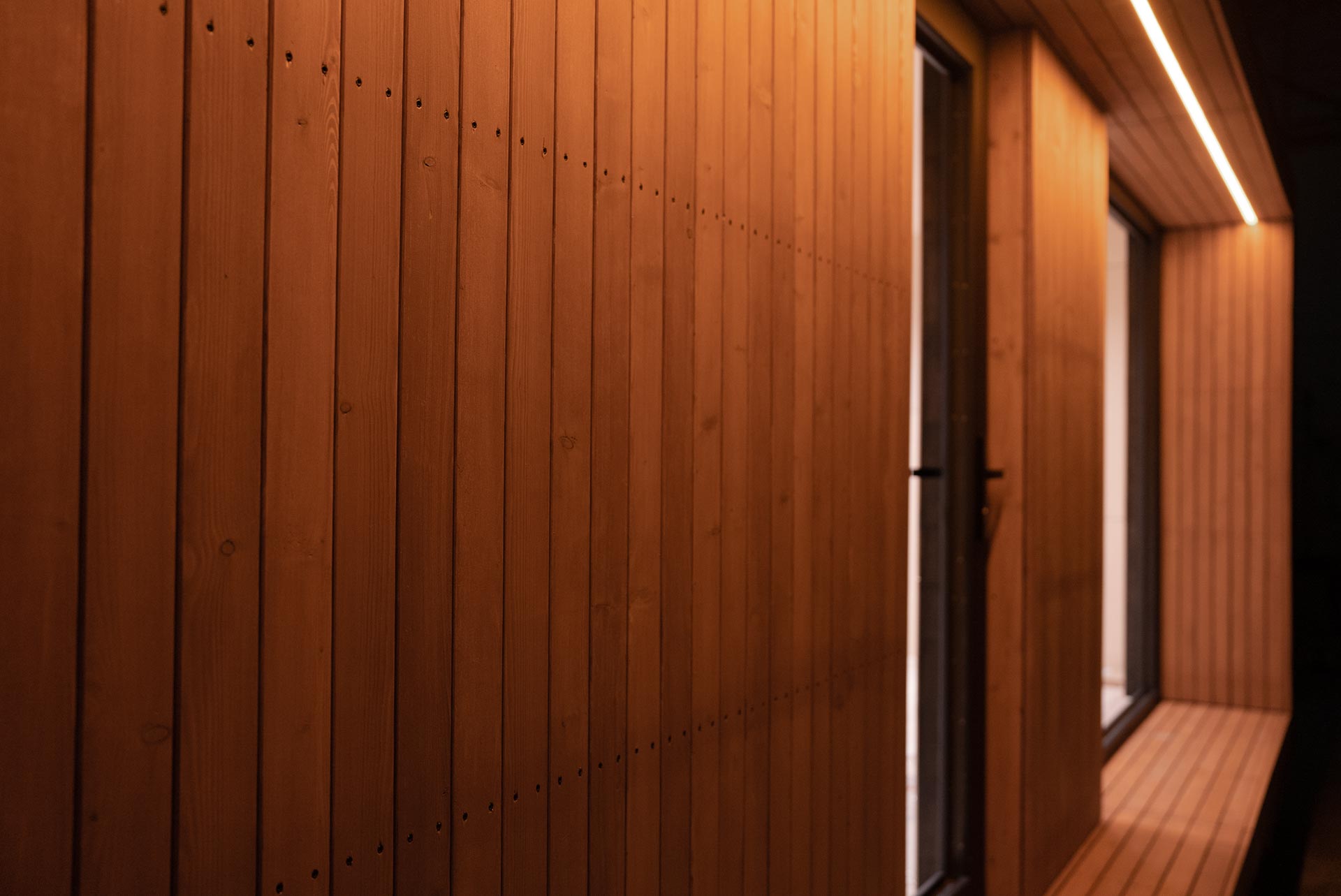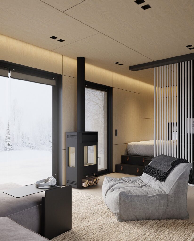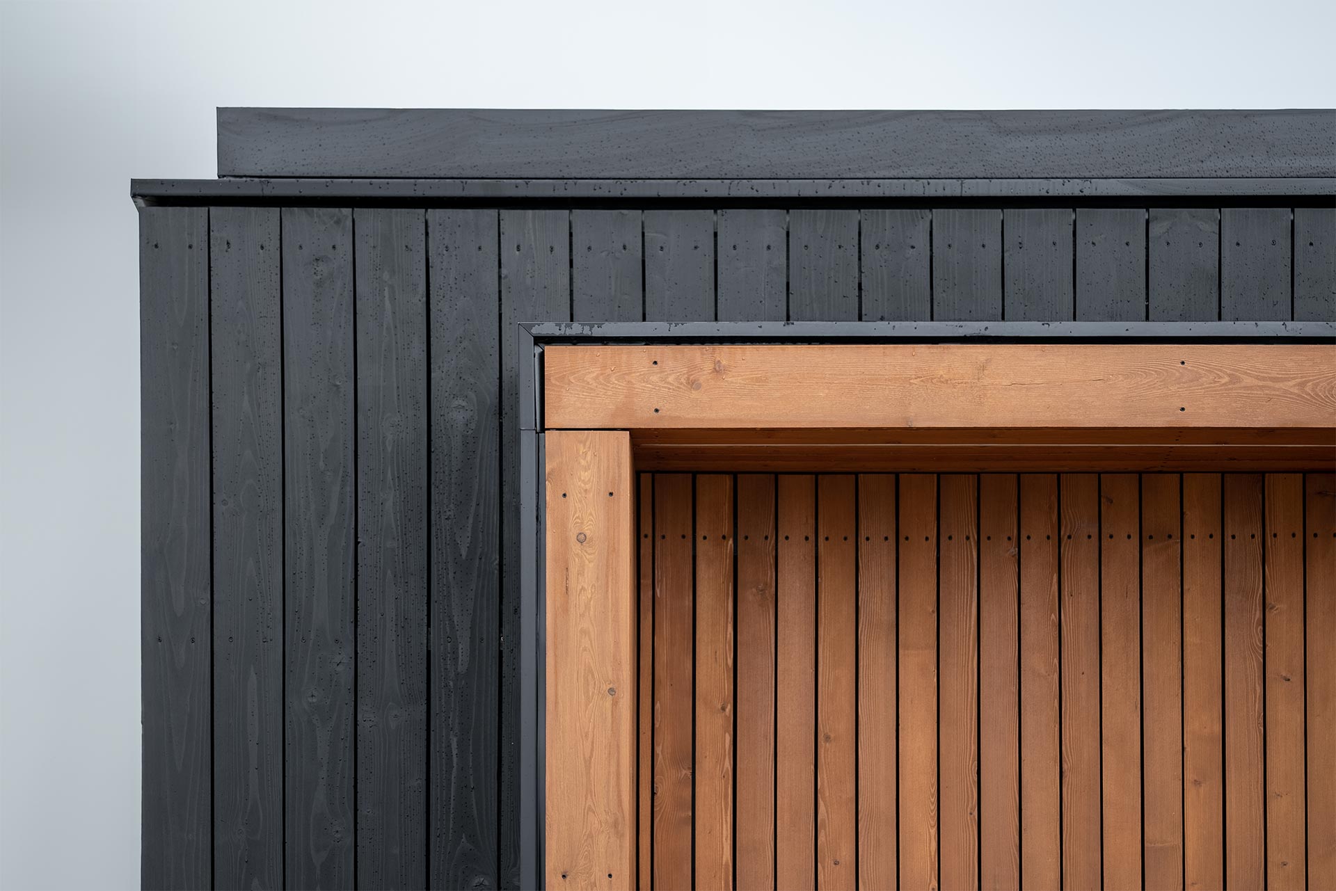 Tandemul dintre molid și larice conferă căsuței un aspect distinctiv și minimalist, îmbinând armonios robustețea cu eleganța.