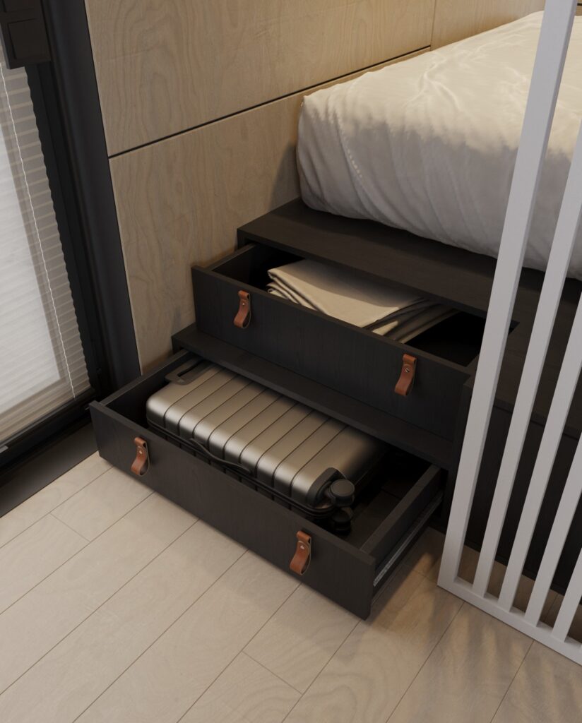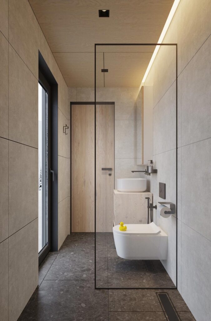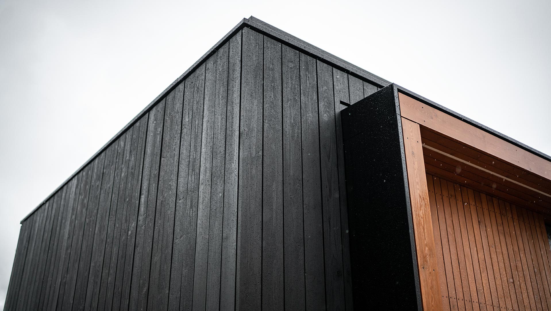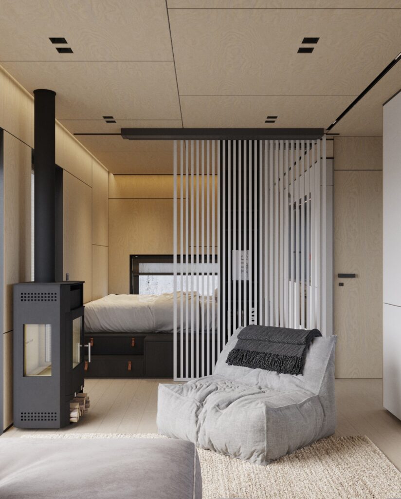 Tandemul dintre molid și larice conferă căsuței un aspect distinctiv și minimalist, îmbinând armonios robustețea cu eleganța.